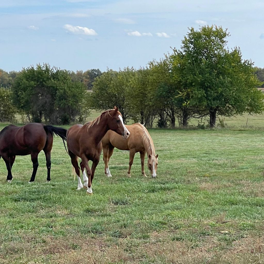 Summer 2023 is waning and pasture grass will soon be dormant. For now, Baby, Sheldon and Tex take advantage of free grazing before winter.